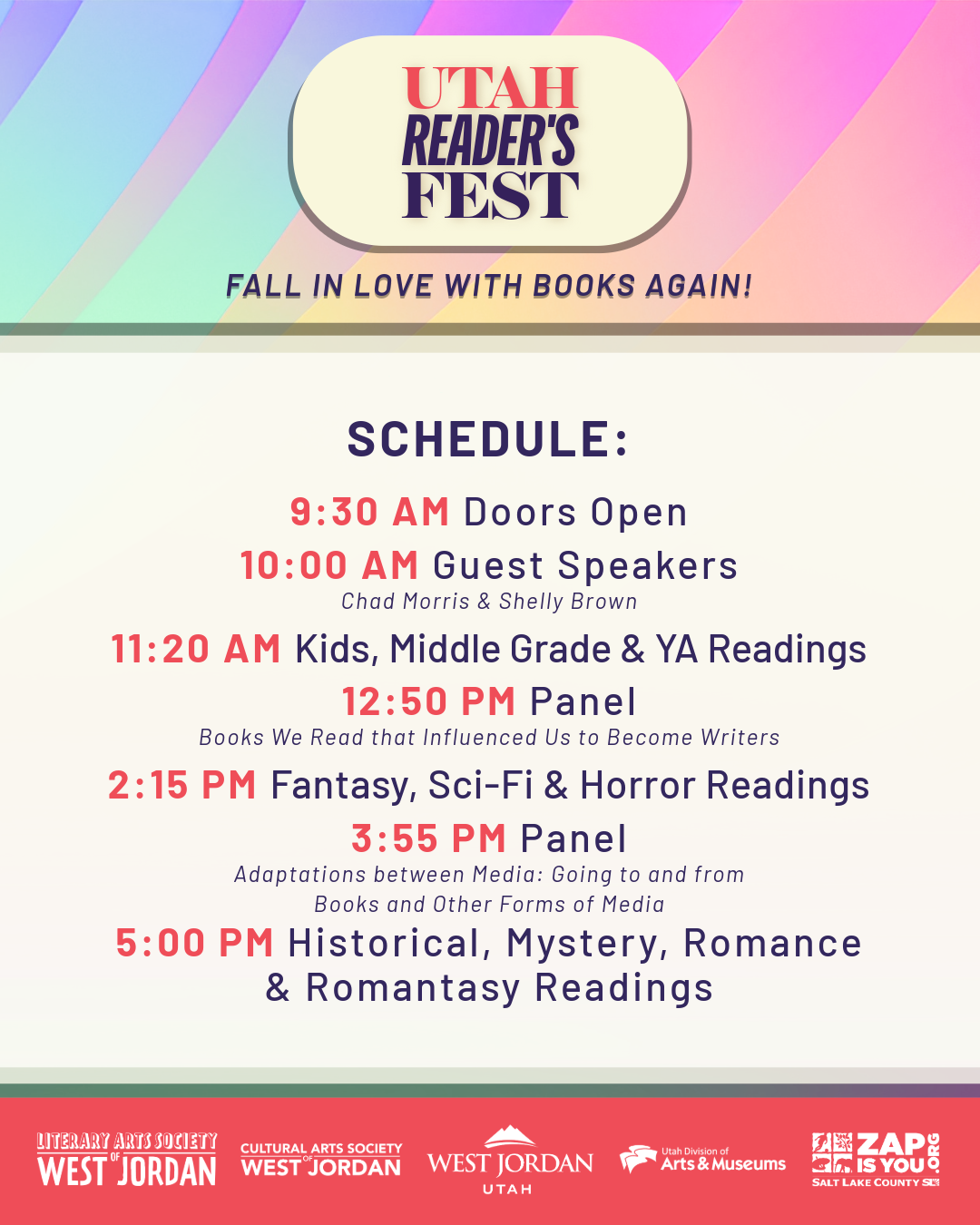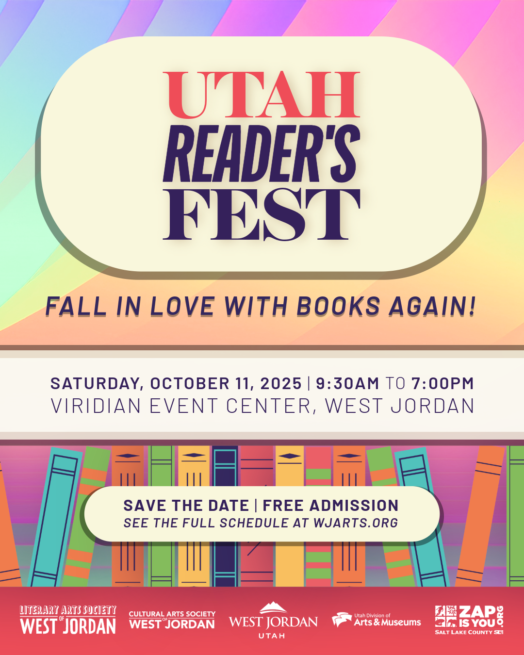 Fall in love with books again! Join me and dozens of other Utah authors, Saturday, October 11th at the Viridian Event Center in West Jordan, Utah. This event is all ages and admission is free.