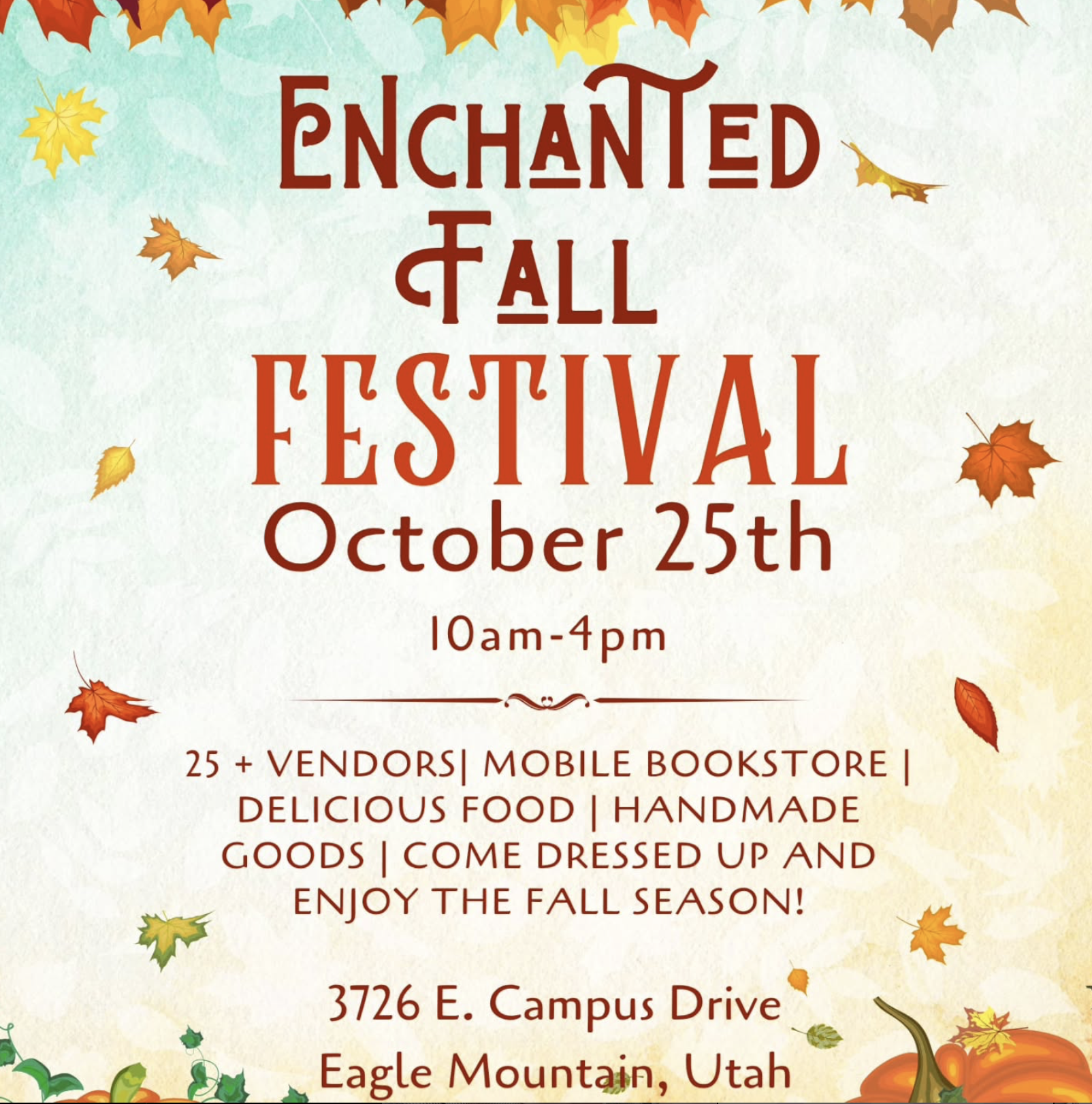 Step into a world of autumn magic at the Enchanted Fall Market! Hosted by Spellbound Books and Smithcraft Shenanigans, this whimsical event will feature over 25 unique vendors, delicious food trucks, and a mobile bookstore filled with stories and cozy fall vibes.