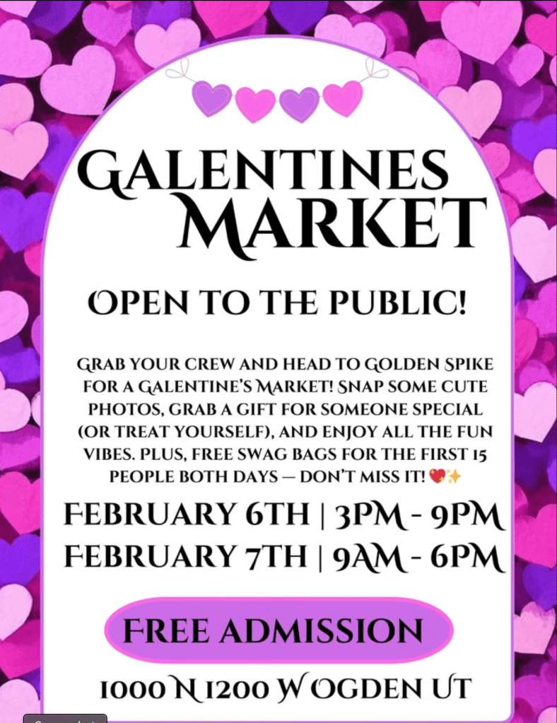π Grab your crew and head to Golden Spike Event Center for a Valentine’s Market on Friday, February 6th 3PM-9PM & Saturday February 7th 9AM-6PM.