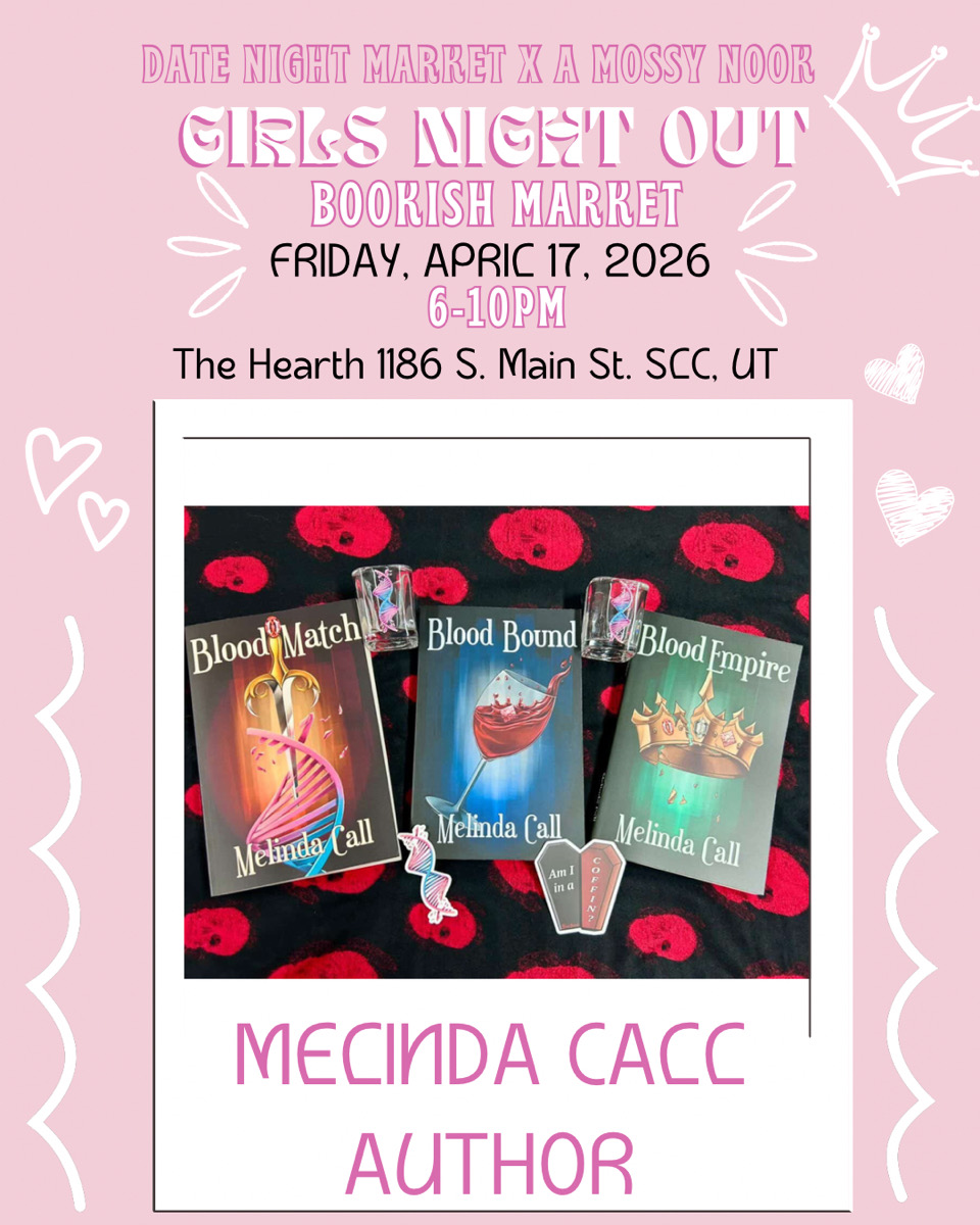 Local vendors will include jewelry, wood crafts, soaps, adorable soap dispensers, oddity art, 3D printing, crochet, and so much more. The Blood Match vampire romance series will be available for purchase, as well as custom shot glasses, clippy bookmarks, and other book related swag.