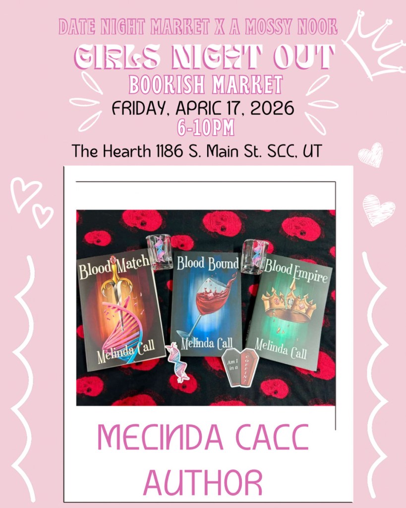 π Blood Match, Blood Bound, and Blood Empire will be available for purchase. I will also have series related swag. The prize wheel will make an appearance with some awesome new prizes.